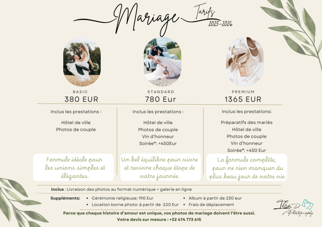 Finalement, on les photographes de mariage à Mouscron sont abordable !