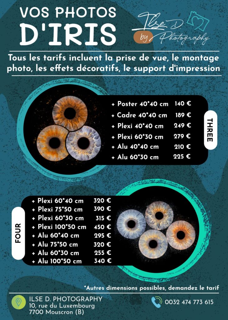 La photo d’iris, c’est plus qu’un phénomène de mode. C’est l’opportunité de créer un souvenir différent. Inutile de complexer à propos de votre sourire, votre coiffure, votre corps, … Dévoilez la beauté de vos yeux au travers de la photographie d’iris.